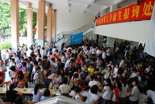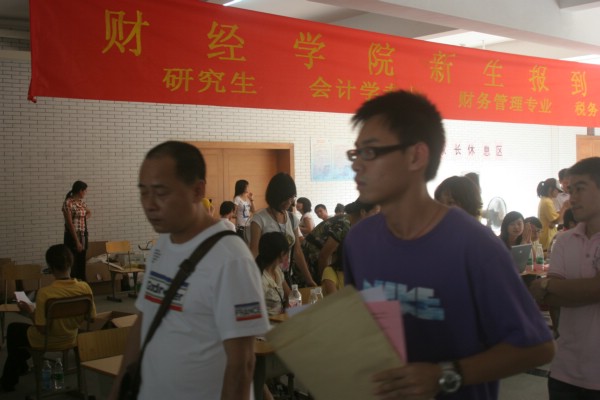 新成立的财经学院喜迎新生(记者 龙成柳)
