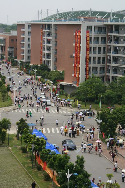 南校区校道上来往着前来报到的学生及陪同的家长(记者 苏俊杰)