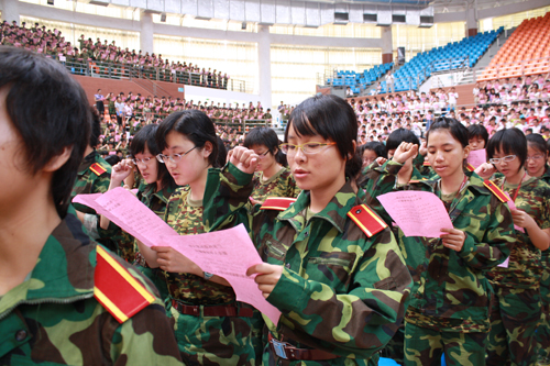 9月7日上午,2009级本科学生开学典礼暨军训动员大会在南校区体育馆举行。