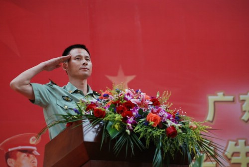 随后,许国彬作了军训动员报告。他首先介绍了武警广州指挥学院的光荣历史,并对新生军训工作提出了三点要求:严格要求,磨砺身心;团结协作,争创佳绩;科学训练,严防甲流。另外,许国彬还指出,为防止甲型H1N1流感的传播与扩散,今年我校对军训方案进行了适当的调整。