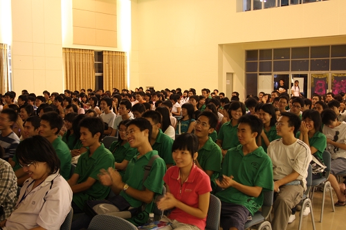 精彩之处,同学们报以掌声和微笑。