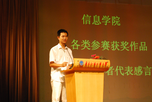 蒋盛益上台致词时,首先感谢了信息学子对此次活动的大力支持,并对此次参加各大比赛的队伍寄予厚望。他说:“虽然信息学院是新学院,但取得的成果是有目共睹的。”此次活动的目的是进一步增强同学们的动手能力、实践能力和创新能力。