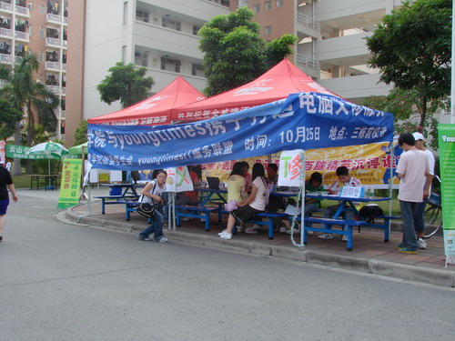 本网讯 10月25日,信息学院团委学生会在南校学生宿舍3栋前校道开展电脑义务维修活动,旨在依托信息学院自身的专业特色和技术优势为广大师生提供电脑义修和疑难杂症解答。