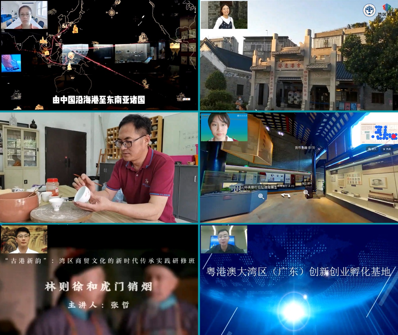 为了克服疫情给实践研修带来的不利影响,研修班实践教学部分采用实地录解和直播讲解方式开展,在黄埔古港、澳门博物馆、岭南金融博物馆加深对传统商贸文化演进的认识,在虎门销烟博物馆加深对中国屈辱近代史的了解,在粤港澳大湾区(广东)创新创业孵化基地感受新时代湾区青年创业的热情。香港中文大学学生王闻达认为,“研修班安排的录播或直播等活动让我们在学习理论知识之余,加深了实践的认识。”研修班特别设计美育环节,走进广外艺术学院中国传统陶瓷工艺直播,感受中华传统优秀文化魅力。澳门理工大学学生卢晓颖“作为土生土长的澳门人”,“很喜欢中国传统的工艺,传统陶艺背后的故事、创作很吸引我,有机会的话希望可以亲手试试。”