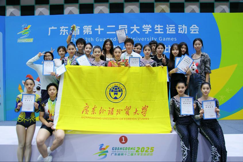 广外健美操队在领队肖喜明和教练员黎良发的带领下,共派出9名运动员参加5个项目的竞赛。经过两天的激烈角逐,广外健儿共获得甲组女子单人操亚军、甲组三人操季军、甲组男子单人操第四名、甲组有氧舞蹈第四名、甲组混合双人操第八名,并取得甲组团体总分第二名的好成绩。
