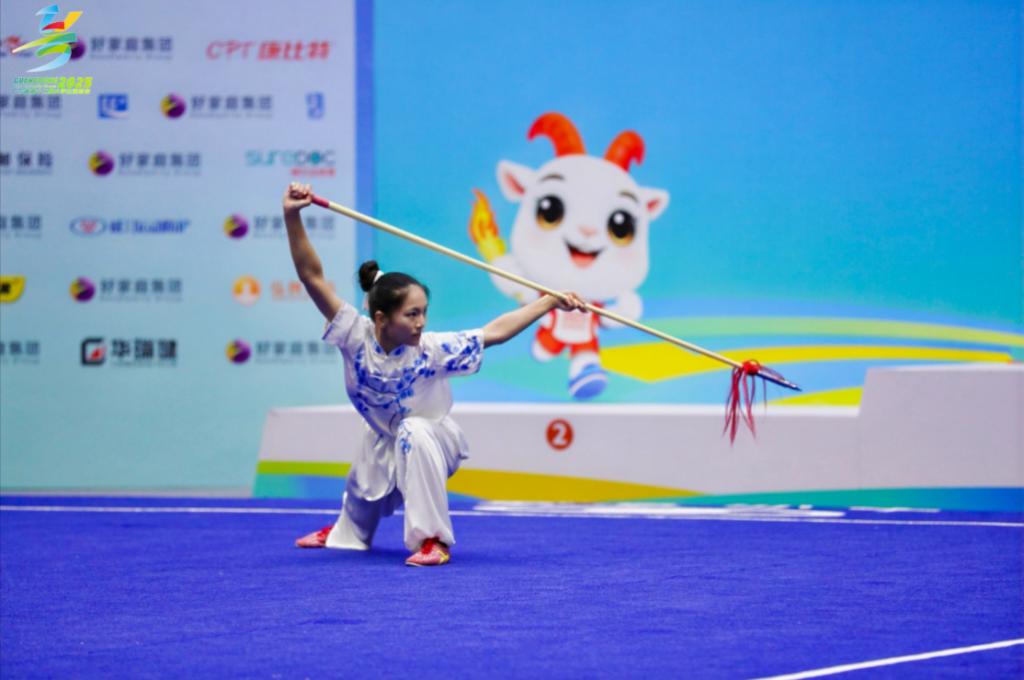 何雅淇在在女子甲组自选枪术项目中夺冠