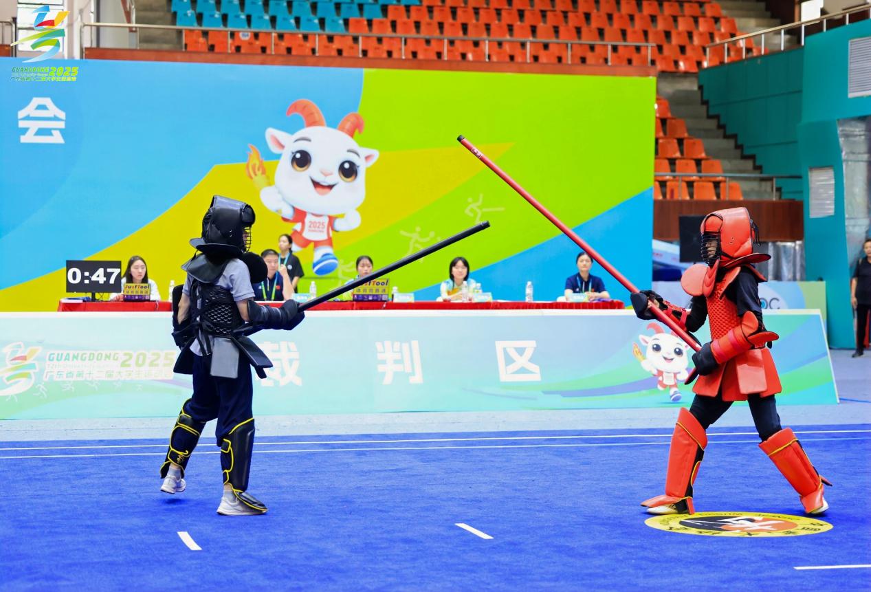 本网讯 5月19日至21日,2025年广东省第十二届大学生运动会武术长短兵比赛在暨南大学(石牌校区)邵逸夫体育馆举行。本届赛事由广东省教育厅、广东省体育局主办,广东省学生体育艺术联合会协办。本届赛事设有男子长兵、短兵,女子长兵、短兵多个项目,共有32支高校代表队参赛,竞争尤为激烈。