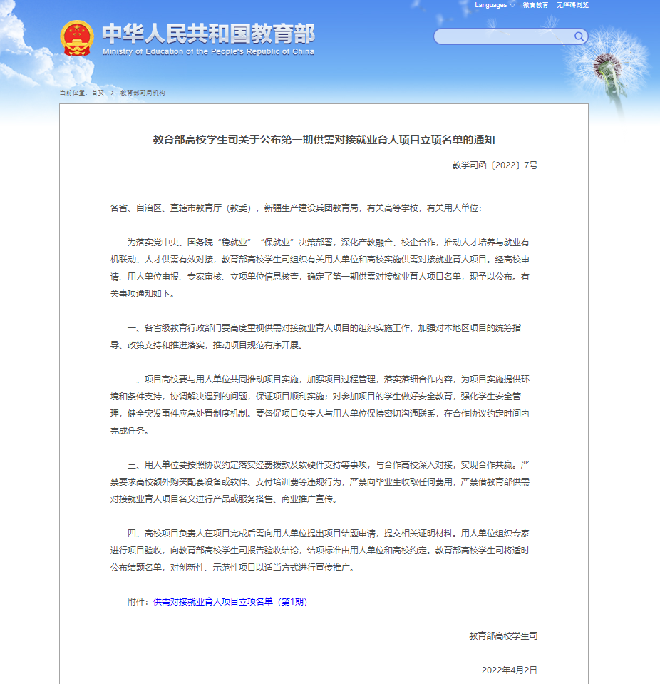 我校7项目入选教育部一期供需对接就业育人项目立项名单